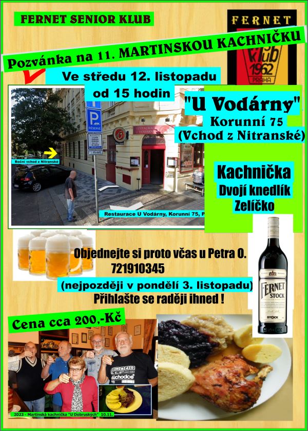 A již je tu listopad a čeká na nás Martinská kachnička U Vodárny (U Dobruských je zavřeno)!